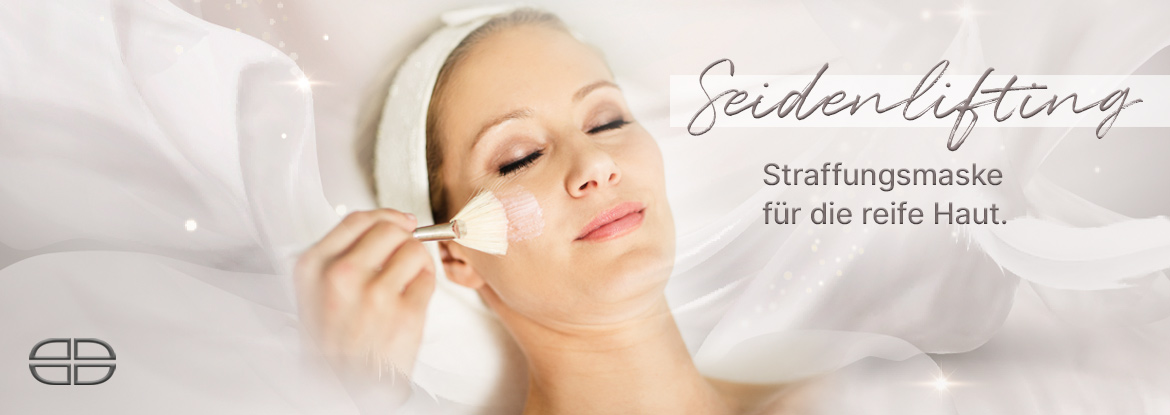Das Silklifting ist eine Sonderzuwendung wenn die Haut drei Lebensjahrzehnte „in den Poren“ hat. Sie kann einerseits gegen Rötungen und Großporigkeit helfen, andererseits welke Partien im Gesicht samtig wirken lassen. Die Proteine in der Maske lassen die Quellen der Hornzellen und damit Fältchen zurücktreten. Die Maske selbst, die zunächst feucht von unten nach oben aufgetragen wird, trocknet im Minutentakt und löst einen Druck auf die Lymphe aus. So wird das Gesicht nach innen kontaktiert und außen mehr nach oben bewegt (biogeliftet). Man sieht es deutlich an den strafferen Konturen. Seidenmoleküle legen sich in die Hautvertiefungen, womit der Teint feiner und samtweich anmutet. Seidenlifting ist sehr gut wirksam bei empfindlicher, rauer, welker Haut – so wie bei der Gesichtsstraffung.